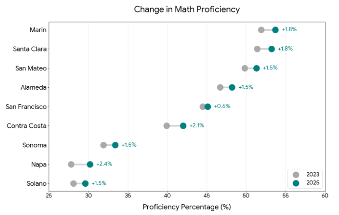 Bay Area reading proficiency (2023 to 2025):