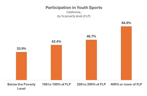 While some families stretch their budgets chasing athletic dreams, rising costs are pricing others out entirely. According to the National Survey of Children's Health, participation rates among California children have been declining, with only 33.9% of children from families living below the poverty line engaging in any sports activity. In contrast, children in families is the highest income group participate at a rate of 64.9%.