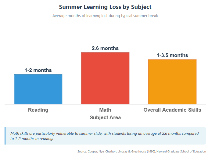 Research shows that students can lose up to two months of reading skills and even more in math during a typical summer break.
