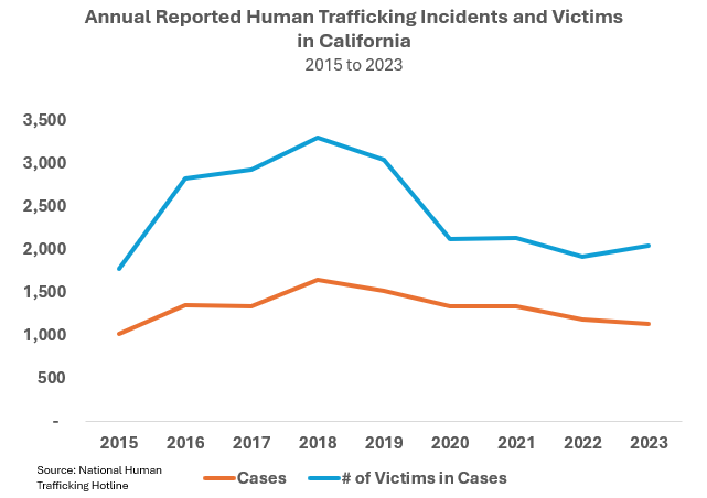 Accurate data remains challenging to obtain due to trafficking's hidden nature. While experts believe most cases go unreported, we present current California trends using available sources. This week, we focus on general trafficking trends and sex trafficking, with labor trafficking to be examined in next week's analysis.
