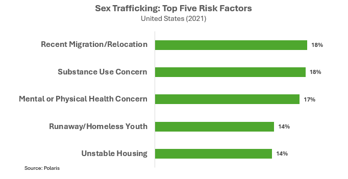 Understanding victim vulnerabilities is crucial for prevention. Key risk factors include recent migration/relocation, mental and physical health challenges, and unstable housing.